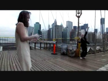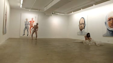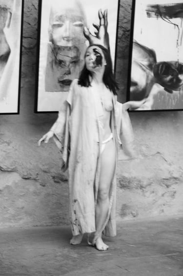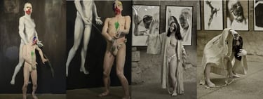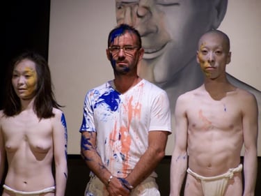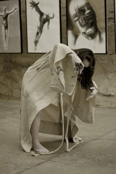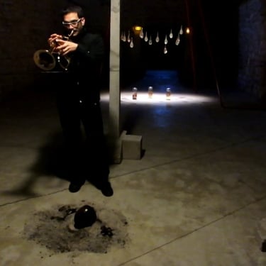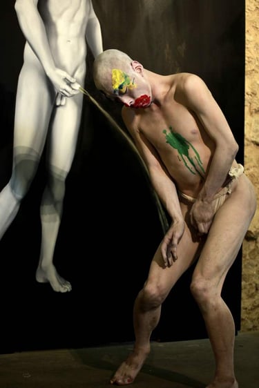 Begun in Paris with Japanese Butoh dancers (Maki Watanabe and Gyohei Zatsu), the performances have also been developed in a theater, on the streets of New York, and in exhibition venues. With Mathieu Esterni, a trumpet-playing musician, the artist staged the Farglivert (Frozen Tears) exhibition about the German concentration camps of the Second World War. At the artist's request, the musician revisited Wagner's Funeral March.