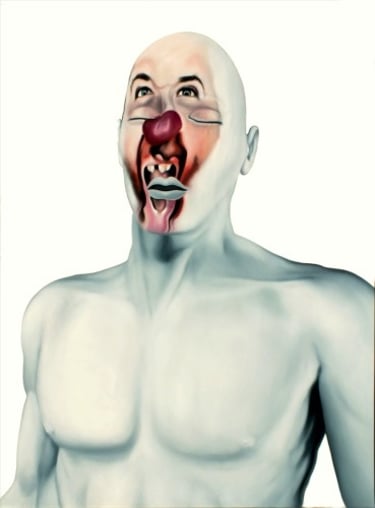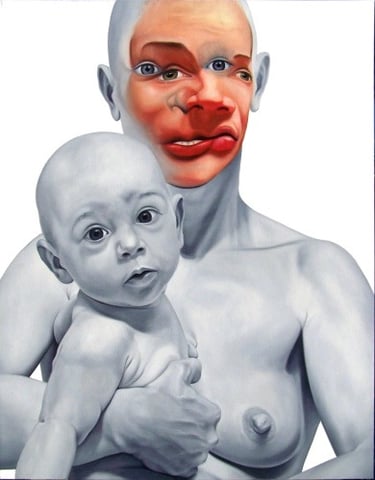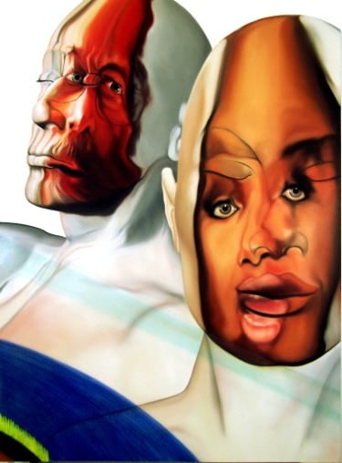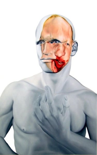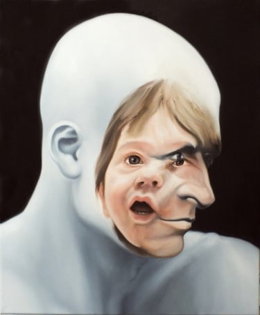 From 2011 - 2012, the artist's exhibitions in the USA will transform Face FS. The formats will be enlarged, and the artist will have to modify the pictorial flesh of the faces. Previously more ethereal and blended, the human flesh will take on a more imposing presence. The white space of the canvas, which was intended to be a "white space of light" with no trace of paint brushing, a "cradle of souls", will sometimes become a narrative space featuring a landscape, a secondary scene.