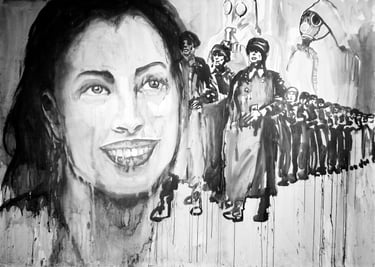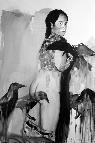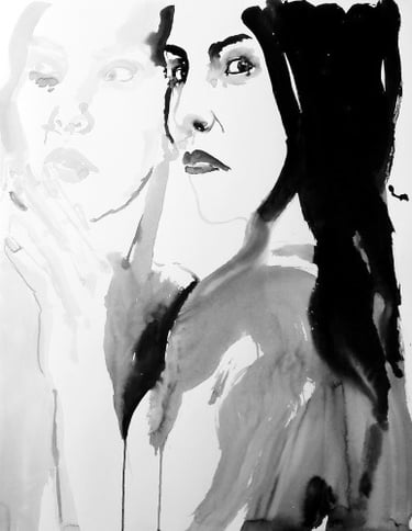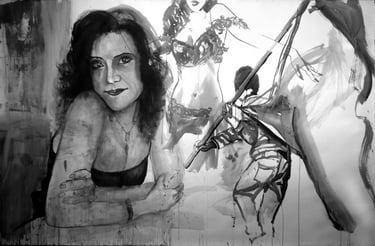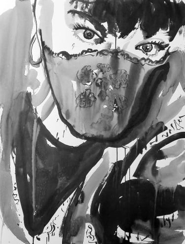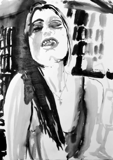 The large-scale Face FS Madonna series - Les pleureuses, is a set of fifty-three works in Indian ink on paper created between 2019 and 2020. The series comprises three sizes: 220x300 cm (6), 150x110 cm (10), 50x70 cm (37).