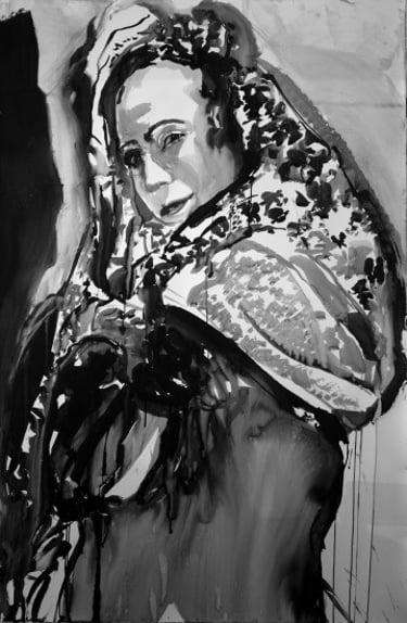 The series was inspired by the rediscovery of Van Der Weyden's Descent from the Cross in the Prado in Madrid. From close up, the artist saw tears streaming down the faces of the scene's protagonists, which led to the first three Face FS New Apostles works in oil on canvas, begun in the studio in 2014. The desire for a larger body of work gave rise to the Madonna series, which went from Van Der Weyden's religious origins to the profane, depicting contemporary women in their everyday lives.