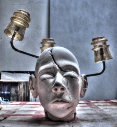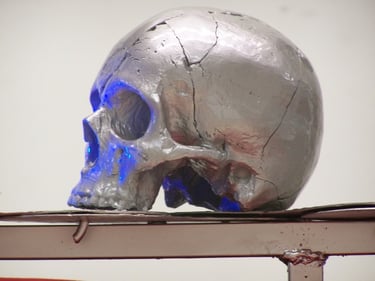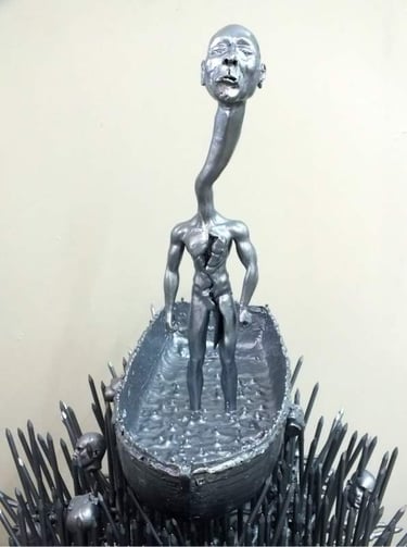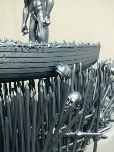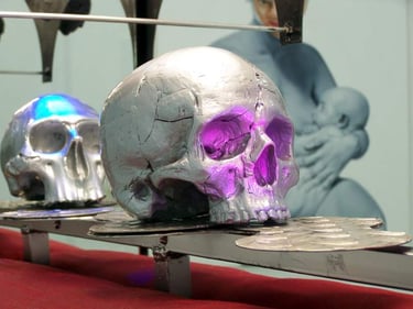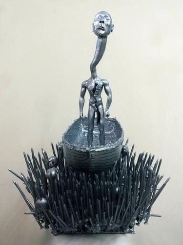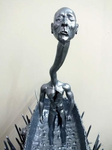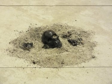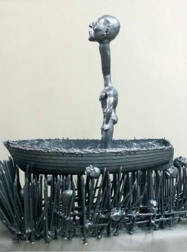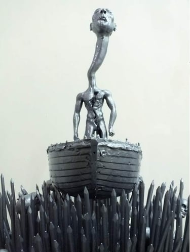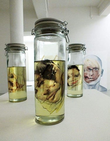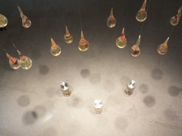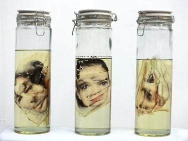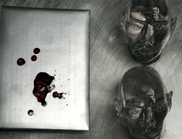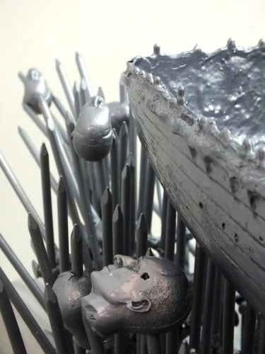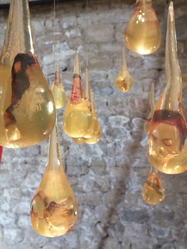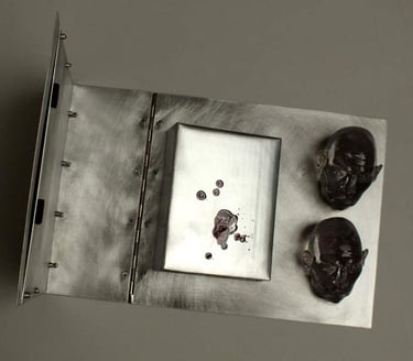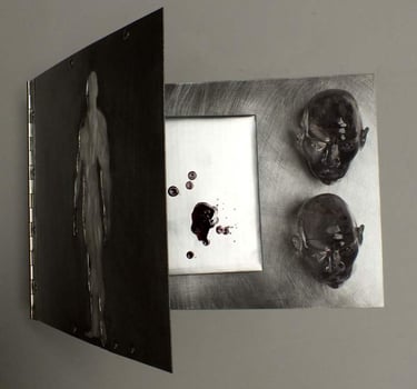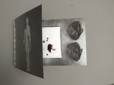 - Blood Sweet and Tears (resin, aluminum, feathers, photographs)