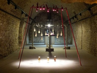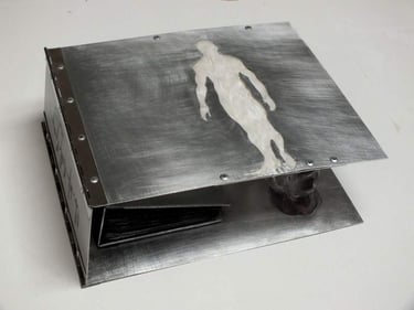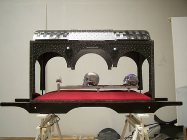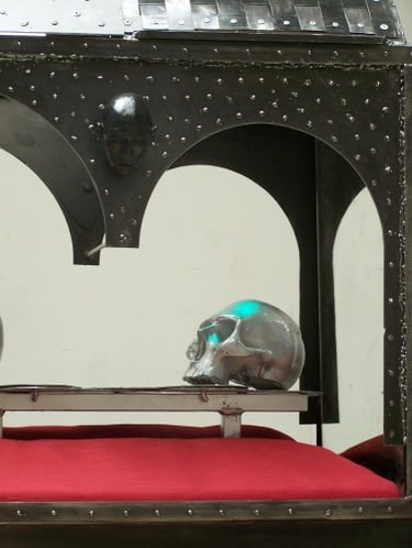 - La châsse de l'homme (steel, wood, aluminum, fabric, lights, resin)